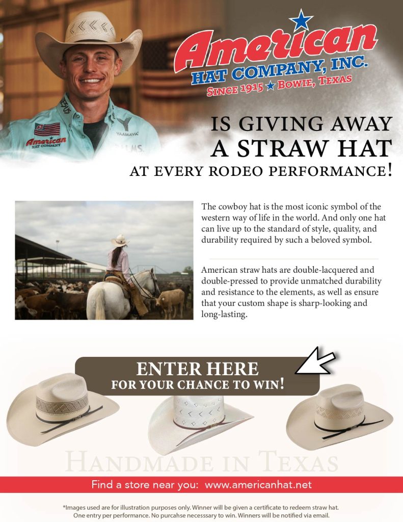 Each bareback rider brings his own “riggin,” a customized suitcase-style handheld grip attached to a piece of leather and cinched with a pad around the horse’s girth. The cowboy secures one gloved hand inside his riggin, while his other arm deemed his “free hand” may not be used in his ride. A previous random draw lets the cowboy know his horse mount and when he nods, the chute gate opens. Upon exit of the chute, the cowboy’s feet must be above the break of the horse’s shoulder through the horse’s first jump before setting into a methodical spurring pattern with his toes turned out. If the ride lasts the required 8 seconds it is then scored by two judges located inside the rodeo arena, who assesses the difficulty and control. Each judge may award 25 max points to the rider for spurring ability and technique, and 25 max points for the animal’s bucking performance, for a 100 point potential score. One of the most physically demanding and wildest events in rodeo, it all comes down to the “luck of the draw!”